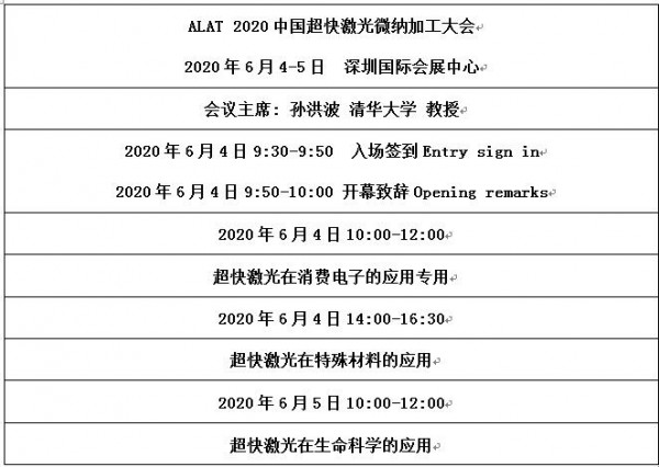 ALAT 2020 China Ultrafast Laser Micro-nano Processing Conference