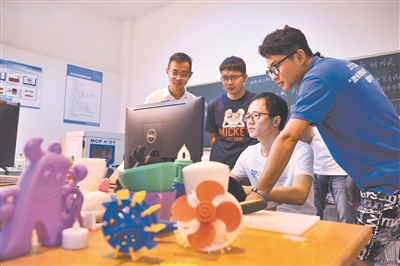 省“激光智能制造”研究生暑期学校正在江苏大学进行。图为昨日,学生们在进行3D打印实验。 辛 一摄 视觉江苏网供图
