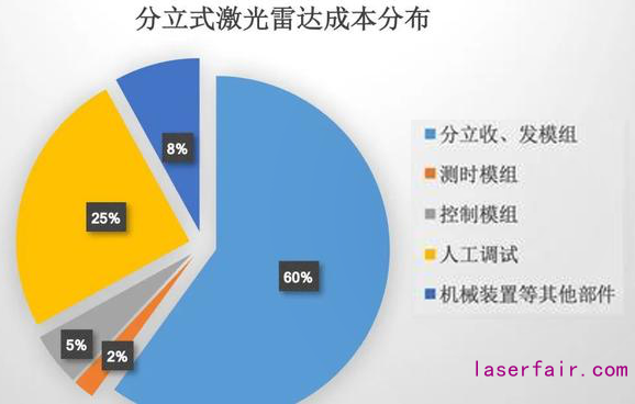 从下图我们可以看到,光电系统成本约占激光雷达整机成本的70%。