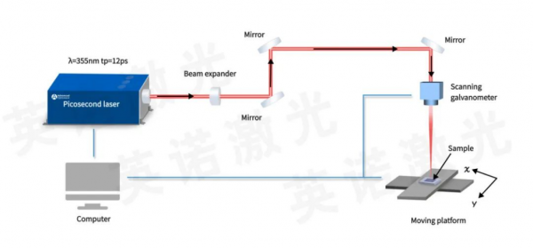 3.1 实验材料和装置 本实验所用的材料为AZ91D镁合金,试样尺寸为30mm×30mm×6mm,分别采用240目、500目、800目、1200目、1500目砂纸对镁合金表面进行打磨,而后用乙醇溶液进行超声波清洗20min,烘干备用。 实验所采用的设备为自研微加工平台,AMT系列工业级皮秒激光器和奥林巴斯BX51光学显微镜。 图1.5 英诺激光AMT皮秒激光器及皮秒微加工平台