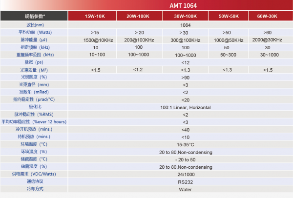 AMT-1064系列红外皮秒激光器,拥有领先的自动换点技术和光斑补偿技术,先进的技术保证了优质的光束质量、光斑大小、延长晶体使用寿命及提高了激光器的稳定性同时采用紧凑型的一体化设计,能有效简化客户的整机设计,为集成商降低集成成本与难度,提高生产效率。 激光器可通过外部触发信号控制,支持多种触发模式可选,客户可按需选择高/低电平触发,上升沿/下降沿触发模式;其中上升/下降沿触发模式可实现按需脉冲触发(POD)功能。 AMT1064 AMT-1064红外皮秒激光器拥有优质的光学质量,光斑质量(M²<1.2),圆度可达90%以上,可靠的脉冲稳定<2%、功率稳定性<3%。激光器功率涵盖15-75W,可定制90W,工作频率范围涵盖10-1000kHz,最高可定制达10M。脉冲能量最高可达2mJ,12ps的超窄脉冲宽度。在100K时,可提供>30W的输出功率,单脉冲能量可达300μJ以上,且脉冲串模式下最多可提供1-10个脉冲选择,并且可以按需对单个脉冲的能量进行调节。 应用领域 凭借以上的优势,AMT-1064红外皮秒激光器不仅在镁合金表面进行激光加工具有优势,同时更可以广泛应用于各种透明脆性材料如玻璃、蓝宝石、全面屏等切割;切割厚度范围广,切割质量好(几乎无粉尘、无崩边、碎屑、微裂纹),而且可实现几乎无锥度任意形状切割(直线、曲线、圆孔等)。