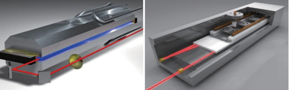 图 1. 左侧的平板雷射设计,非常适合功率缩放,右侧为波导,用于较低功率 ; 两种激光谐振器设计均提供出色的光模质量和功率稳定性。