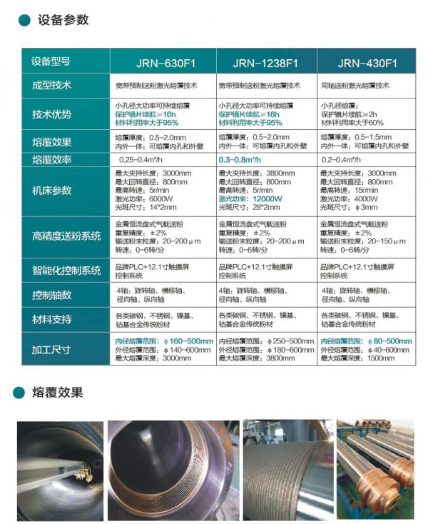 熔覆效率高达0.25-0.4㎡/h;单层熔覆厚度可在0.5mm至2.0mm区间灵活调节;熔覆致密度、硬度、耐蚀性等指标行业领先。