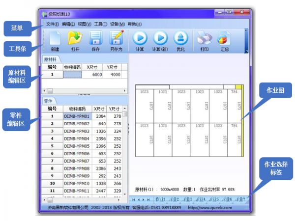5.高性能、高速度开料算法,材料利用率、余料优化、切割工作量小化、达到理想水平;