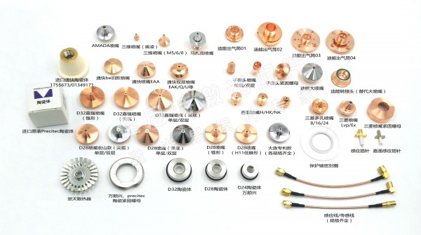 激光配件:射频管、YAG晶体棒、IPG激光器、激光气体、喷嘴/割嘴、陶瓷体/环、滤芯/滤板/滤筒、聚焦镜/镜组、保护镜、反射镜、圆偏镜、感应线、防护罩、清洁用品、氙灯等。