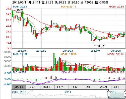 今 开: 21.11 成交量: 13053手 振 幅: 2.09% 最 高: 21.33 成交额: 2759.34万 换手率: 1.09% 最 低: 20.89 总市值: 89.28亿 市净率: 6.30 昨 收: 21.08 流通...