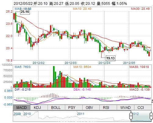 今 开: 20.10 成交量: 5054手 振 幅: 1.10% 最 高: 20.27 成交额: 1019.22万 换手率: 0.42% 最 低: 20.05 总市值: 85.95亿 市净率: 6.06 昨 收: 19.91 流通市...