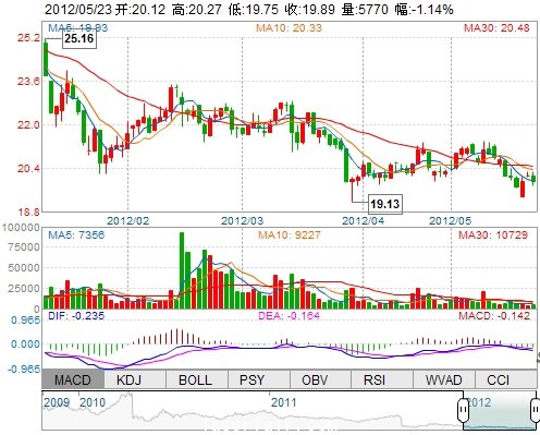 今 开: 20.12 成交量: 5769手 振 幅: 2.58% 最 高: 20.27 成交额: 1151.81万 换手率: 0.48% 最 低: 19.75 总市值: 84.97亿 市净率: 5.99 昨 收: 20.12 流通市...