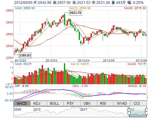 | 昨 收: | 2637.83 | 成交量: | 4929097手 |