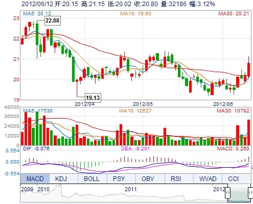 | 今 开: | 20.15 | 成交量: | 32185手 | 振 幅: | 5.60% |