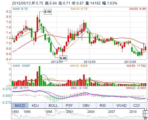 | 最 高: | 6.94 | 成交额: | 967.91万 | 换手率: | 0.82% |