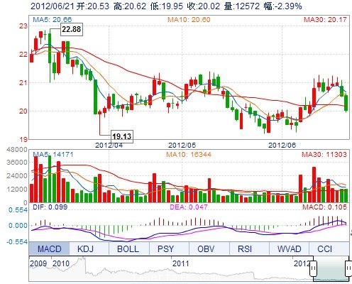 今 开: 20.53 成交量: 12572手 振 幅: 3.27% 最 高: 20.62 成交额: 2540.33万 换手率: 1.05% 最 低: 19.95 总市值: 85.53亿 市净率: 6.03 昨 收: 20.51 流通...