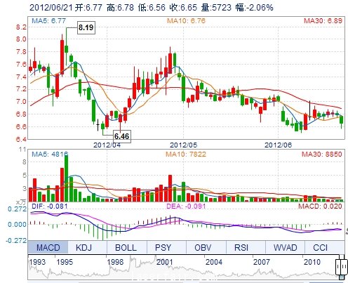 今 开: 6.77 成交量: 5722手 振 幅: 3.24% 最 高: 6.78 成交额: 380.09万 换手率: 0.33% 最 低: 6.56 总市值: 11.55亿 市净率: 2.85 昨 收: 6.79 流通市值: ...