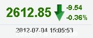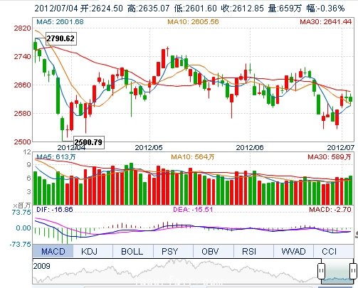 今 开: 2624.50 最 高: 2635.07 最 低: 2601.60 振 幅: 1.28% 昨 收: 2622.39 成交量: 6588986手 成交额: 912642.03万 换手率: --