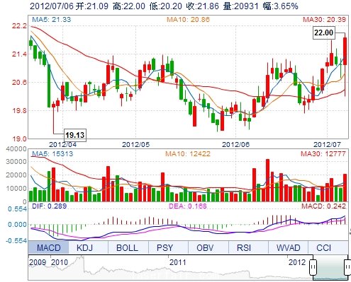 今 开: 21.09 成交量: 20930手 振 幅: 8.53% 最 高: 22.00 成交额: 4501.40万 换手率: 1.75% 最 低: 20.20 总市值: 93.39亿 市净率: 6.58 昨 收: 21.09 流通...