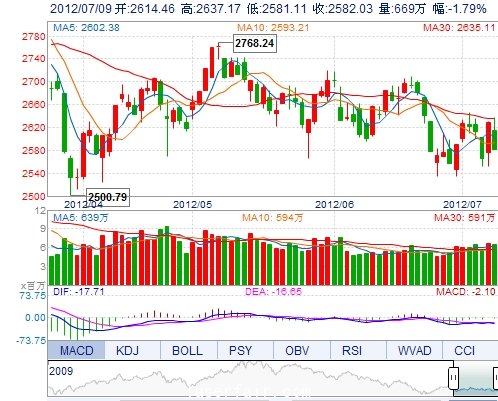 今 开: 2614.46 最 高: 2637.17 最 低: 2581.11 振 幅: 2.13% 昨 收: 2629.22 成交量: 6690948手 成交额: 1035317.29万 换手率: --