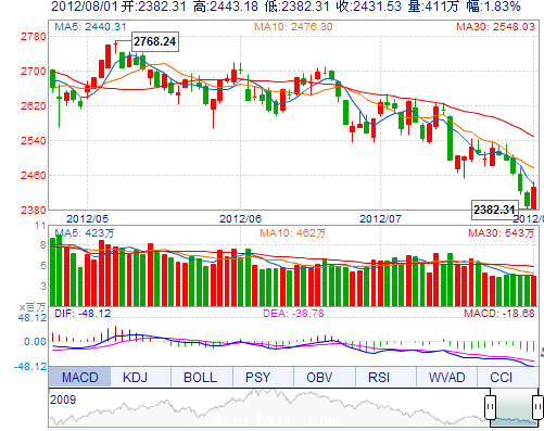 | 最 低: | 2382.31 | 振 幅: | 2.55% |