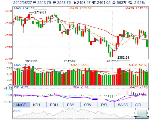 今 开: 2513.79 最 高: 2513.79 最 低: 2458.47 振 幅: 2.19% 昨 收: 2527.22 成交量: 5625388手 成交额: 711569.13万 换手率: --