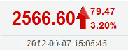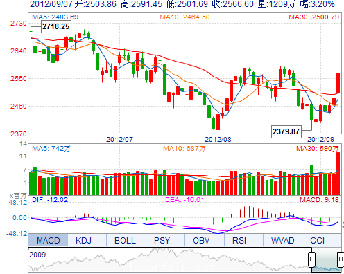 今 开: 2503.86 最 高: 2591.45 最 低: 2501.69 振 幅: 3.61% 昨 收: 2487.12 成交量: 12092298手 成交额: 1268458.35万 换手率: --