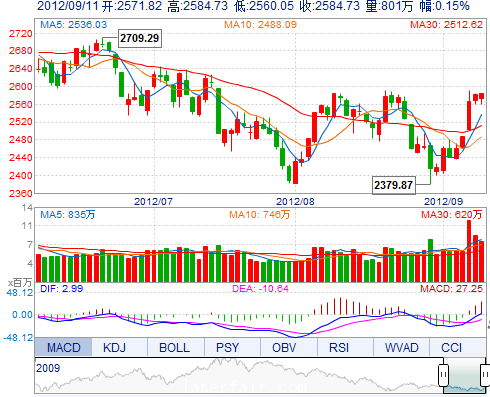 | 昨 收: | 2580.87 | 成交量: | 8013232手 |