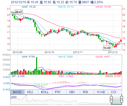 今 开: 15.45 成交量: 9807手 振 幅: 3.83% 最 高: 15.92 成交额: 1525.86万元 换手率: 0.76% 最 低: 15.33 总市值: 67.33亿 市净率: 4.61 昨 收: 15.42 流通...