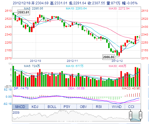 今 开: 2304.69 最 高: 2331.01 昨 收: 2308.72 最 低: 2291.64 成交量: 870.57万手 振 幅: 1.71% 成交额: 89.03亿元