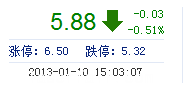 | 今 开: | 5.92 | 成交量: | 1.32万手 | 振 幅: | 4.74% |