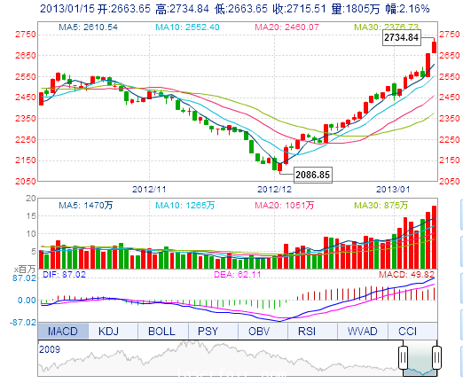 今 开: 2663.65 最 高: 2734.84 昨 收: 2658.17 最 低: 2663.65 成交量: 1805.18万手 振 幅: 2.68% 成交额: 192.38亿元