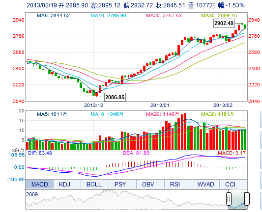 今开: 2885.90 最高: 2895.12 昨收: 2889.64 最低: 2832.72 成交量: 1076.59万手 振幅: 2.16% 成交额: 113.74亿元