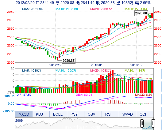 今开: 2841.49 最高: 2920.88 昨收: 2845.51 最低: 2841.49 成交量: 1034.74万手 振幅: 2.79% 成交额: 120.70亿元