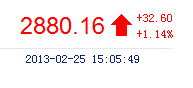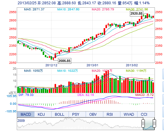 今开: 2852.08 最高: 2888.60 昨收: 2847.56 最低: 2843.17 成交量: 854.09万手 振幅: 1.60% 成交额: 101.72亿元