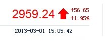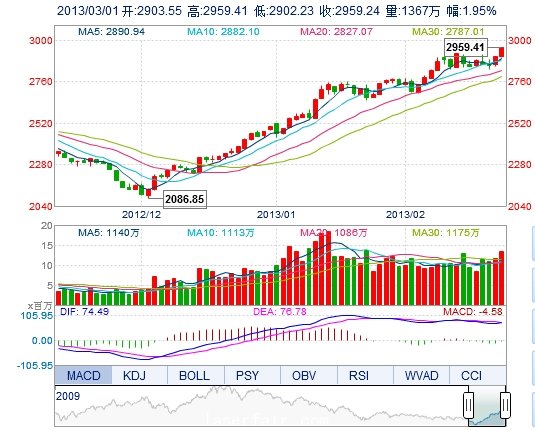 今开: 2903.56 最高: 2959.41 昨收: 2902.59 最低: 2902.23 成交量: 1367.19万手 振幅: 1.97% 成交额: 149.94亿元