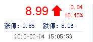 | 最 高: | 9.16 | 成交额: | 9367.65万元 | 换手率: | 5.40% |