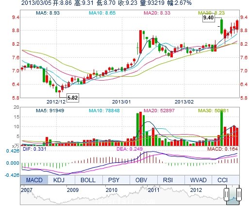 | 最 高: | 9.31 | 成交额: | 8422.60万元 | 换手率: | 4.80% |