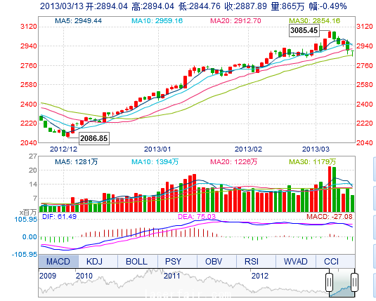 今 开: 2894.04 最 高: 2894.04 昨 收: 2902.05 最 低: 2844.76 成交量: 865.01万手 振 幅: 1.70% 成交额: 93.75亿元
