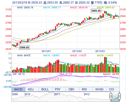 今 开: 2936.03 最 高: 2953.55 昨 收: 2936.16 最 低: 2880.37 成交量: 778.94万手 振 幅: 2.49% 成交额: 90.53亿元