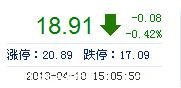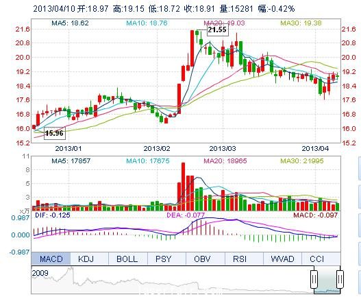 今开: 18.97 成交量: 1.53万手 振幅: 2.26% 最高: 19.15 成交额: 2895.50万元 换手率: 0.45% 最低: 18.72 总市值: 81.81亿 市净率: 5.53 昨收: 18.99 流通市...