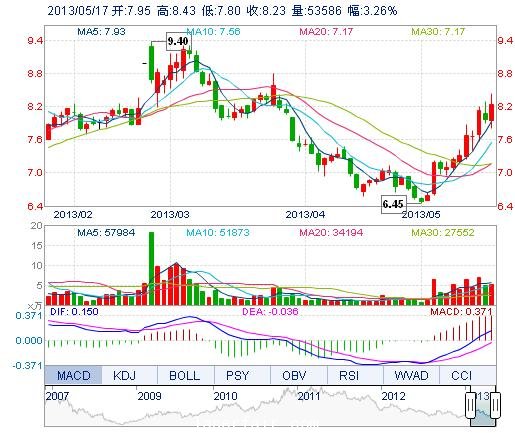 | 今 开: | 7.95 | 成交量: | 5.36万手 | 振 幅: | 7.90% |