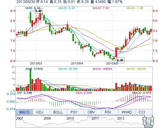 今开: 8.14 成交量: 4.35万手 振幅: 4.18% 最高: 8.35 成交额: 3580.83万元 换手率: 2.24% 最低: 8.01 总市值: 16.52亿 市净率: 3.41 昨收: 8.13 流通市值: ...