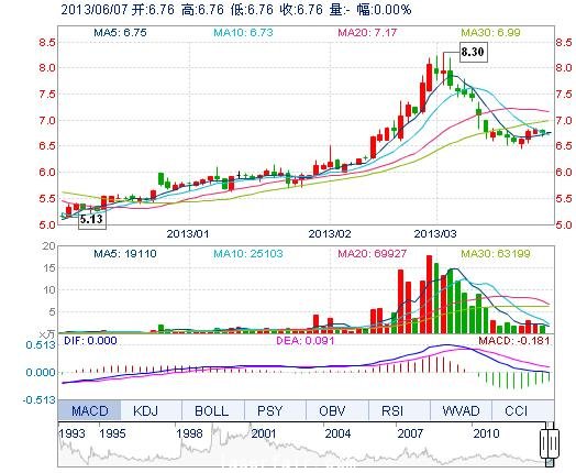 | 昨 收: | 6.76 | 流通市值: | 11.74亿 | 市盈率TTM: | -- |