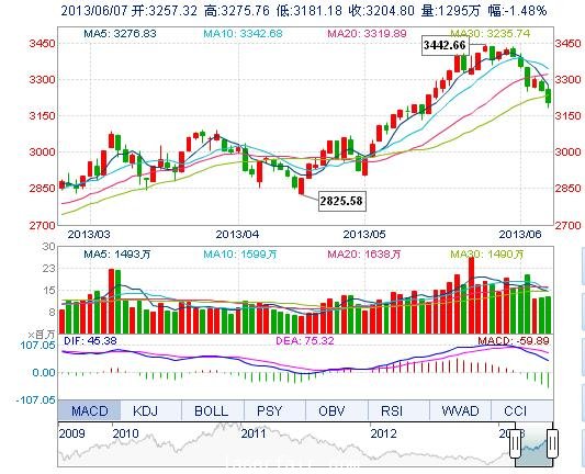 今开: 3257.32 最高: 3275.76 昨收: 3252.78 最低: 3181.18 成交量: 1294.78万手 振幅: 2.91% 成交额: 149.24亿元