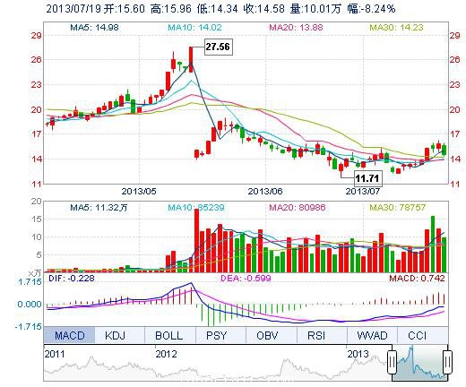 | 今 开: | 15.60 | 成交量: | 10.01万手 | 振 幅: | 10.20% |