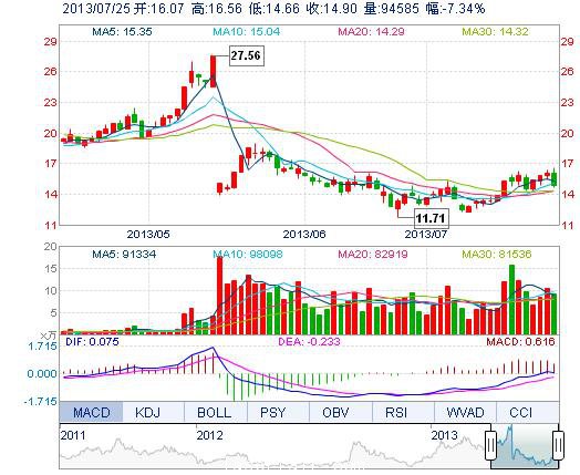| 今 开: | 16.07 | 成交量: | 9.46万手 | 振 幅: | 11.82% |
