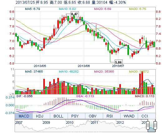 | 今 开: | 6.95 | 成交量: | 3.01万手 | 振 幅: | 5.01% |