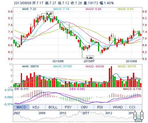 | 今 开: | 7.17 | 成交量: | 1.92万手 | 振 幅: | 2.09% |