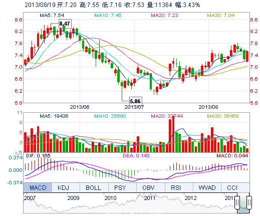 | 今 开: | 7.20 | 成交量: | 1.14万手 | 振 幅: | 5.36% |