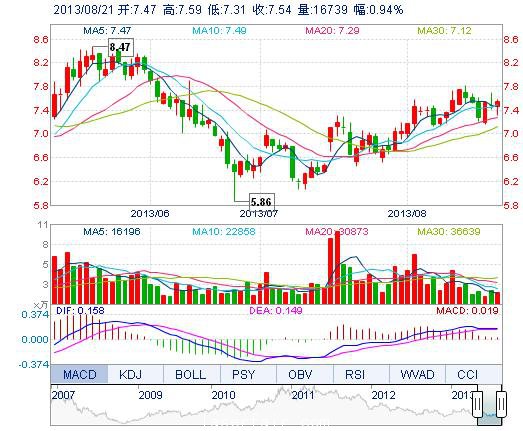 | 最 高: | 7.59 | 成交额: | 1253.46万元 | 换手率: | 0.86% |