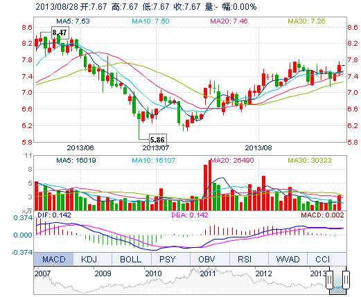 | 昨 收: | 7.67 | 流通市值: | 14.90亿 | 市盈率TTM: | -- |