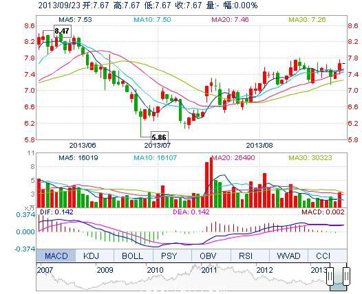 | 昨 收: | 7.67 | 流通市值: | 14.90亿 | 市盈率TTM: | -- |