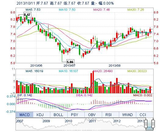 | 昨 收: | 7.67 | 流通市值: | 14.90亿 | 市盈率TTM: | -- |
